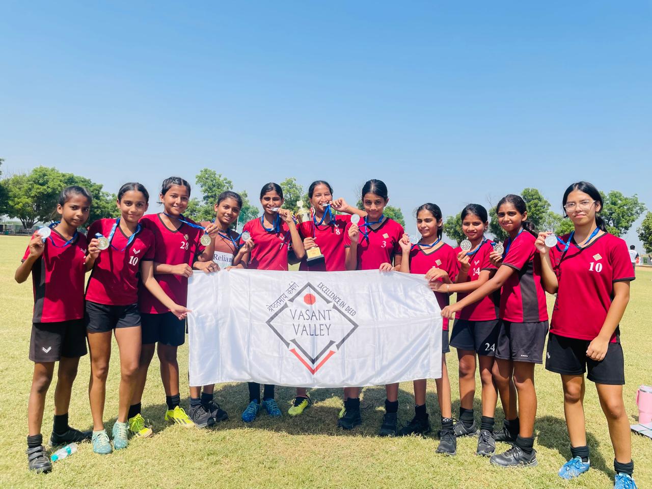 The U-14 Girls Football Team achieved 2nd Place at the CBSE National Football Championship 2025, hosted by Northern International School, Adampur, Hisar, Haryana, from 22nd to 27th September 2025.