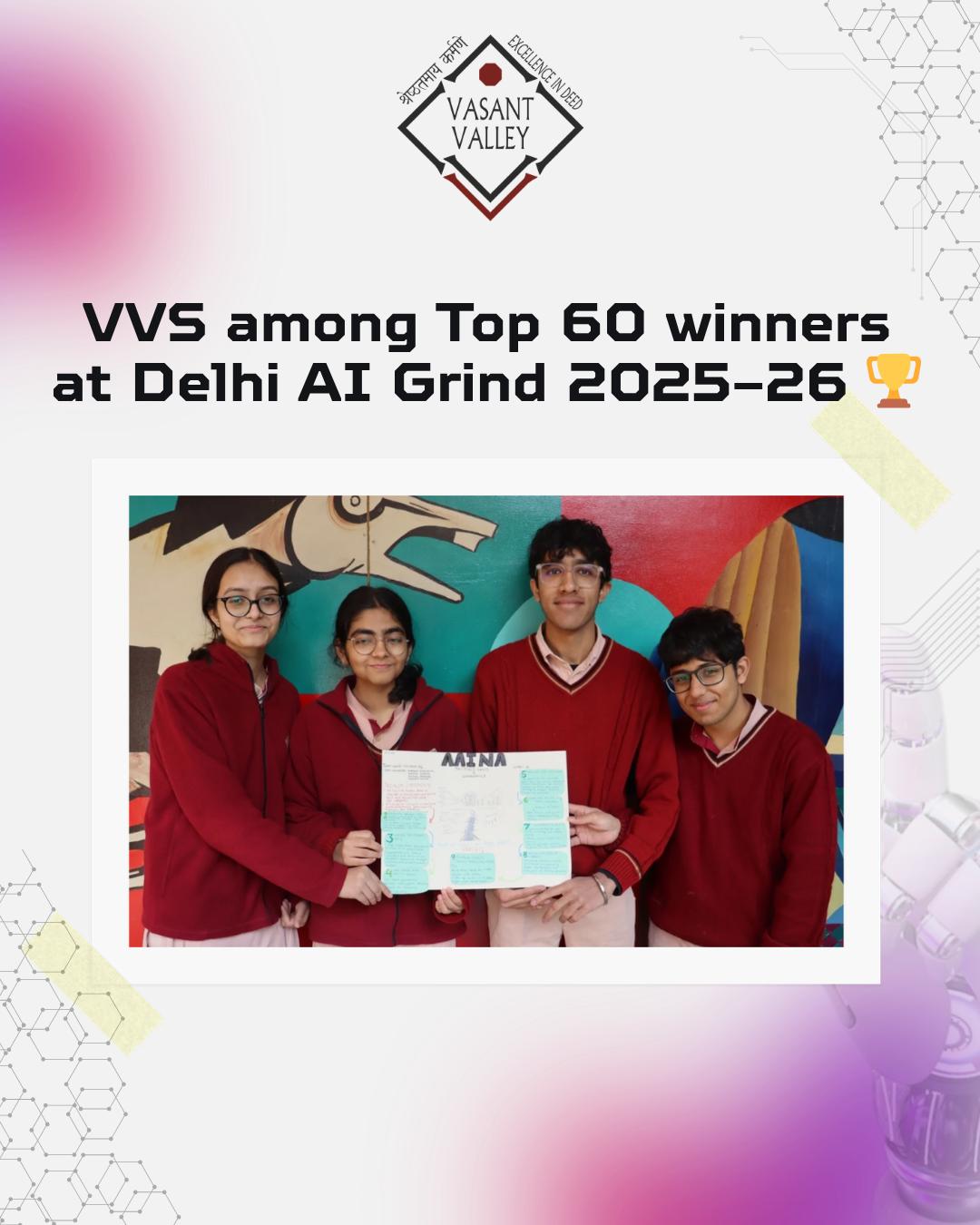 We are proud to announce that Vasant Valley School has been recognised among the Top 60 Winners at Delhi AI Grind – Pilot Edition 2025–2026!